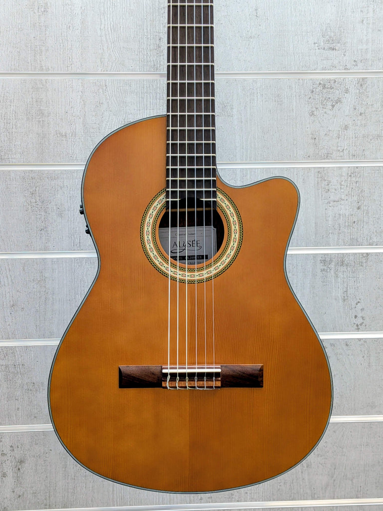 La Alysee CL200CES è una chitarra classica 4/4 elettrificata con corpo cutaway, pensata per chi cerca uno strumento comodo, versatile e adatto sia allo studio che alle prime esperienze sul palco.