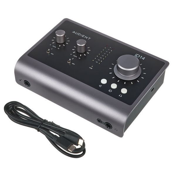 Prendi il controllo del tuo setup di registrazione domestica e mobile: l'interfaccia audio USB-C Audient iD14 MKII. Che tu stia accedendo ai preamplificatori microfonici di Classe A alimentati da bus ed alla sua conversione leader della categoria o che sfruttando il suo ingresso ottico ADAT per ottenere otto canali aggiuntivi di preamplificazione esterna, questa interfaccia 10-in / 6-out ha gli strumenti di cui hai bisogno per ottenere ottimi suoni in qualsiasi ambiente, da podcasting e vlogging alla registrazione di batteria multi-microfono. L'iD14 MKII dispone anche di una JFET DI analogica per catturare simultaneamente la profondità e la dimensione di una chitarra o di uno strumento di accompagnamento. Questa ultima versione di Audient iD14, la MKII, racchiude una conversione audio ancora migliore, velocità di trasmissione scattante USB 3.0 ed una connessione USB-C futuristica per una maggiore compatibilità con i moderni laptop e tablet. Due uscite per cuffie da studio ed un controllo monitor in stile console forniscono un monitoraggio affidabile delle tracce e una riproduzione di musica per audiofili. Poi c'è l'intuitiva rotella di scorrimento virtuale ScrollControl di Audient, che consente di utilizzare la grande manopola del volume dell'iD14 MKII per modificare i parametri di DAW e plug-in e persino attenuare le uscite del monitor a comando. Un'altra novità per la MKII è la suite software ARC Audient, che offre strumenti, sim cab, plug-in FX e Cubase di Steinberg al momento della registrazione del prodotto. |
