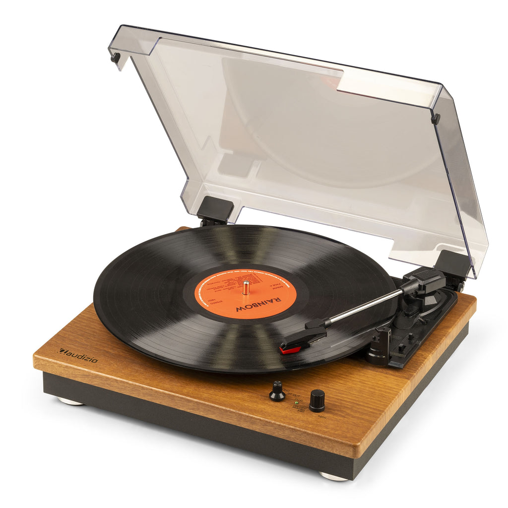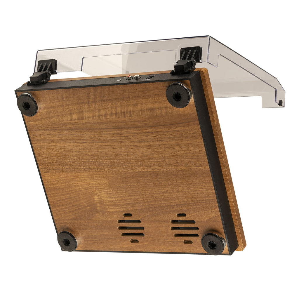 Riproduci i tuoi vinili con il giradischi dal design moderno RP112. Questo giradischi a 3 velocità è dotato di una solida base in legno, rifinita con un’elegante impiallacciatura in legno chiaro o scuro di alta qualità. I piedini ammortizzati riducono le vibrazioni e garantiscono un ascolto fluido e stabile, con qualsiasi genere musicale.