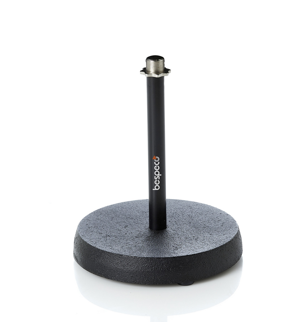 Asta microfonica da tavolo con base rotonda in ghisa. Piedini in gomma antivibrazioni.