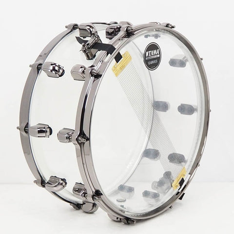 Il rullante TAMA MBAS65BN-CI Starclassic Mirage 14”x6,5” è una prestigiosa edizione limitata creata per celebrare il 50° anniversario di TAMA. Questo strumento unisce l’estetica distintiva dell’acrilico trasparente con una costruzione di alta qualità, offrendo un suono potente e definito, ideale per batteristi che cercano un rullante unico sia per performance dal vivo che per registrazioni in studio.